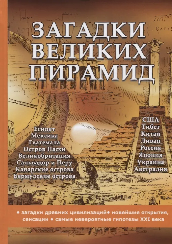 Эта познавательная книга посвящена раскрытию тайн великих пирамид, расположенных в различных уголках нашей земли. Ещё древнегреческий философ, математик и мистик Пифагор после продолжительного путешествия по Египту оставил загадочную надпись о пирамидах: "Секрет Вселенной". Однако география этих таинственных сооружений обширна - Мексика, Гватемала, Сальвадор, Перу, Тибет, Великобритания, Австралия, США, Япония, Китай, Канарские острова и даже Россия. Некоторые из пирамид по своим размерам намного превосходят египетские, материалы и технологии, с помощью которых они были изготовлены, остаются загадкой для современной науки, а сведения о стеклянных подводных пирамидах, обнаруженных в районах Б