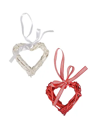 Заготовка для декора из ротанга Сердце с лентой (11065500) (10 см) (2 цв. бел. и красн.)