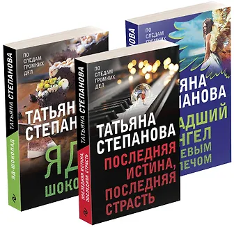 В комплект входят остросюжетные романы Татьяны Степановой «Последняя истина, последняя страсть», «Яд-шоколад», «Падший ангел за левым плечом».