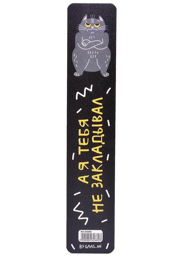 Этот кот просто шедеврален! Изображение в сочетании с тёмным цветом очень хорошо передаёт хмурое и сердитое настроение (у меня такое часто бывает, так котяра подходит 😂,а для другого подойдёт иная закладка). Игра слов не очень впечатлила, несколько отдаёт жаргоном.