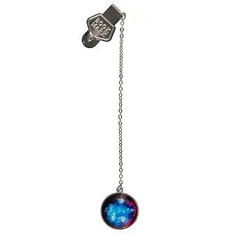 Знаете ли вы, что самое раннее упоминание книжных закладок относится к XVI-му веку? Якобы, серебряную закладку для книг подарили королеве Англии Елизавете I. С тех пор появилось множество разных видов закладок. Например, такой, с подвеской и зажимом. Посмотрите, какие подвески с галактическим принтом её украшают! С ними вы точно не потеряете интересное место в книге или блокноте.