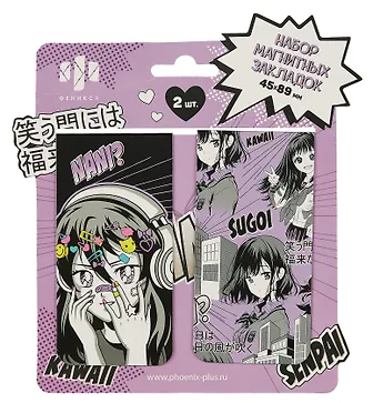 Закладки для книг 02шт "Манга" магнитно-пластиковые, ассорти