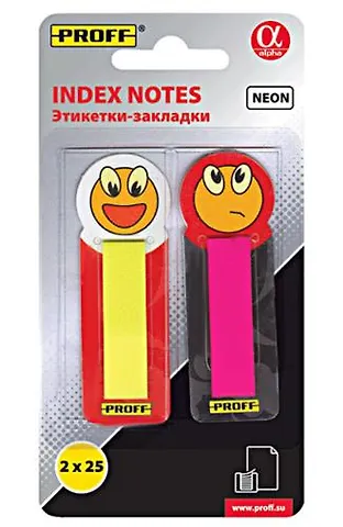 Закладки с клеевым краем 12*45мм Proff Alpha 2 цвветов *25л. неон в блистере PF-1374