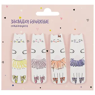 Закладки самоклеящиеся Kitty Ballerina помогут быстро находить нужные страницы в учебнике, книге или ежедневнике и поддерживать порядок в записях. Нежный дизайн с кошечкой-балериной подойдёт школьникам и тем, кто любит аккуратную канцелёрию. Клейкий слой надёжно фиксирует закладку и позволяет переклеивать её без повреждения бумаги. На свободном поле удобно делать короткие пометки и выделять важное.