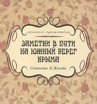 Заметки К.Жукова, изданные в 1865 году в Санкт-Петербурге и с тех пор больше не печатавшиеся, открывают серию "Крымские путешествия". В книге сохранены все лексические и отчасти орфографические особенности авторского текста.