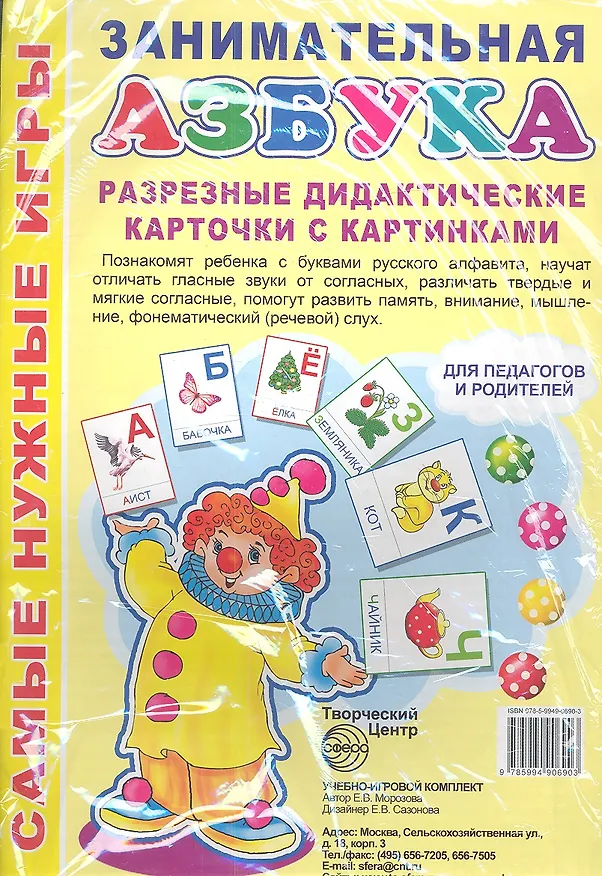 Разрезные дидактические карточки с картинками познакомят ребенка с буквами русского алфавита, научат отличать гласные звуки от согласных, различать твердые и мягкие согласные, помогут развить память внимание, мышление, фонематический (речевой) слух. В этом помогут карточки с буквами, на обороте каждой карточки дается цвет, указывающий на звук, который обозначает буква: мягкий или твердый согласный, гласный.