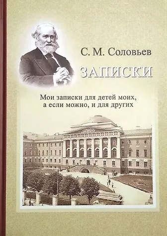 Сергей Михайлович Соловьев (1820–1879), выдающийся историк, ректор Московского университета, академик Императорской СанктПетербургской академии наук. В «Записках» автор рассказывает о событиях своей жизни: детских годах в семье священника, обучении в гимназии, службе репетитором у детей князя М.Н.Голицына, студенчестве и внутренних порядках Московского университета. Мемуарист дает яркие характеристики многим известным современникам, которых знал лично (М.П.Погодин, Т.Н.Грановский, К.С.Аксаков, Д.Н.Свербеев и др.), не редко добавляя довольно разоблачительные сведения о них. Не менее критичен он по отношению к Николаю I и Александру II, его оценка их царствования – беспристрастный исторический