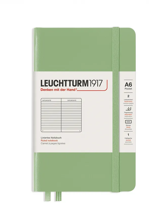 Записная книжка A6 93л лин. "Classic" тв.обл., шалфей, Leuchtturm1917