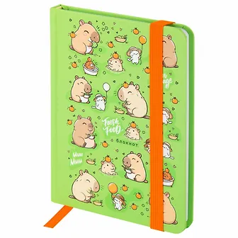 Записная книжка А6 96л кл. "Капибары" тв.обложка, резинка