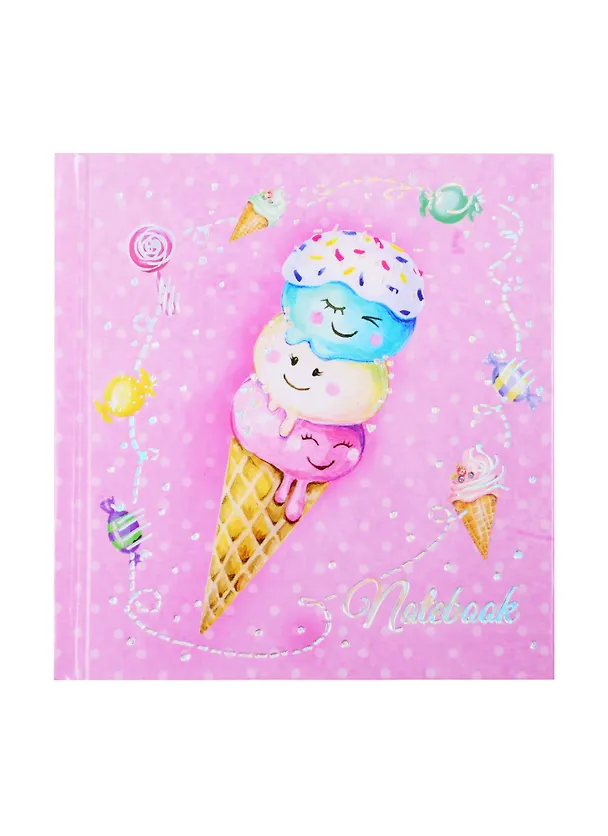 Записная книжка 105*105 48л "МОРОЖЕНОЕ И СЛАДОСТИ" 7БЦ, тиснение фольгой, глянц.ламинация