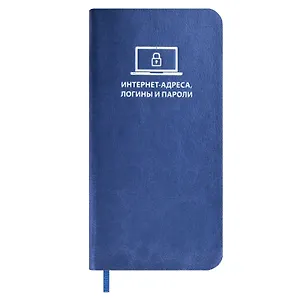 Записная книжка 56л 72*142 "САРИФ БИРЮЗОВЫЙ" д/записи интернет-адресов, логинов и паролей, кожзам., мягк.переплёт, тиснение фольгой, ляссе, инд.уп.