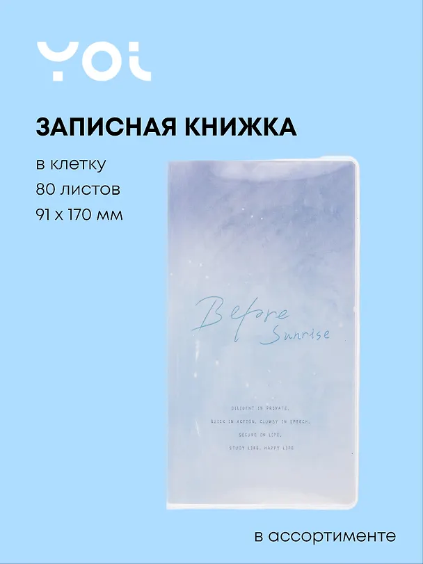 Хорошая записная книжка под справочник и все, что хорошо хранить в кармане. Небеленая белая бумага, ПВХ-обложка, 3 дизайна на выбор: "Before sunrise", "Twilight state", "Perfect illusion".