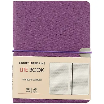 Записная книжка А6 100л лин. "LITE BOOK. Фиолетовый" иск.кожа, интегр.переплет, скругл.углы, ляссе, поперечн.резинка, инд.уп.