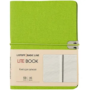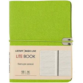 Записная книжка А6 100л лин. "LITE BOOK. Салатовый" иск.кожа, интегр.переплет, скругл.углы, ляссе, поперечн.резинка, инд.уп.