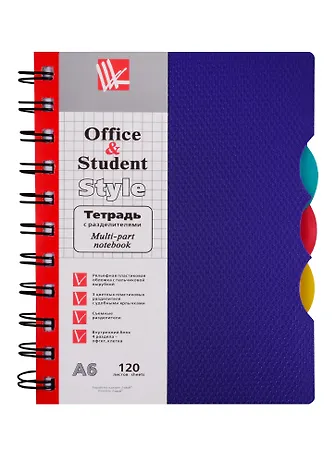 Тетради с пластиковой обложкой и разделителями - удобный инструмент для деловых людей, которым нужно логически разделить записи. Пять цветных пластиковых разделителей помогут быстро ориентироваться в текстах, а пальчиковые вырубки на обложке можно пометить и тогда будет ясно, в каком блоке нужно искать нужную информацию.
