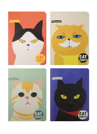 Записная книжка А6 "Cat family" карт.обл., мат.лам., выб.лак, сшивка, ассорти, Languo
