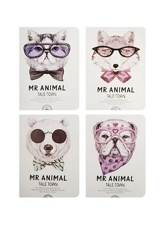 Записная книжка А6 24 листа клетка "Mr.Animal" картонная обложка, сшивка, ассорти, Languo