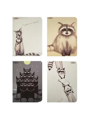 Записная книжка А6 40 листов клетка "Еноты" картонная обложка, матовая ламинация, выборочный лак, блок офсет, сшивка, ассорти, MARKER ARTE
