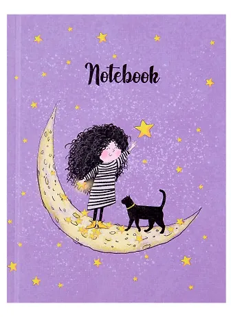 Записная книжка арт. 61557 ДЕВОЧКА НА ЛУНЕ / А6, 117х151 мм, 48 л., твёрдый переплёт, полноцветная печать, глянцевая голографическая ламинация. 65 г/м², одна краска, линия,