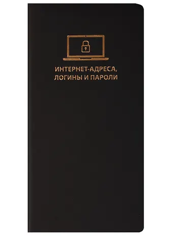 Зап. книжка д/зап. интернет-адресов, логинов и паролей арт.45202/30 СОФТ-ТАЧ ЧЕРНЫЙ (70x140мм, 112 стр., бел. офсет, печать внутр. блока в 2 краски, запеч. форзаца пантоном, мягк. переплет, скругл. корешок, тисн. золот. фольгой, закругл. углы переплета и внутр. блока, ляссе и каптал в цв. обл.)