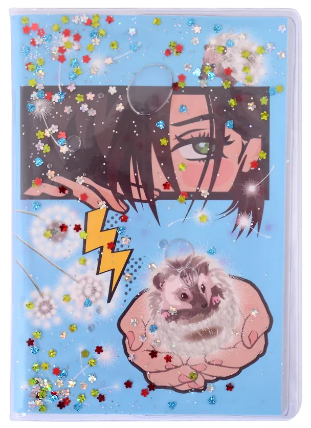 Красочный рисунок для любителей аниме, оригинальная обложка с водой и плавающими в ней блёстками, листы в клетку, компактный размер