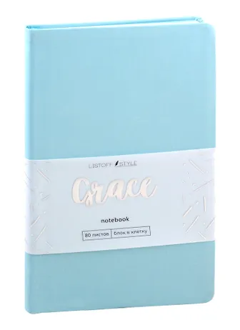 Книга для записей А6- 80л кл. "Graсe" небесно-голубой, искуственная кожа, ляссе, индивидуальная упаковка.