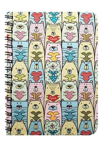 Записная книжка А6 80л кл. "Мишки с сердцем" спираль, Kairui