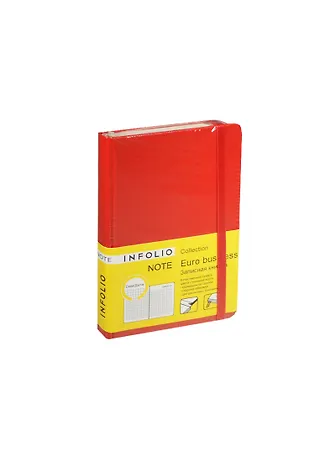 Записная книжка А6 96 листов "Euro business" твердый переплет, на резинке, красная, IN FOLIO