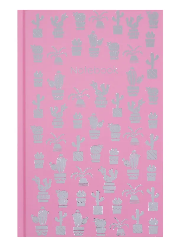 Записная книжка "Ноутбук" арт. 47888 СЕРЕБРЯНЫЕ КАКТУСЫ /А6+, 192 стр., переплет 7БЦ, полноцвет. печать, тиснение цветн. фольгой, пленка софт. тач вельвет, блок - белый офсет 65 г./