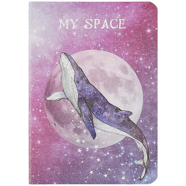 Записная книжка формата А7 30 листов в клетку "My space" сшивка, тонировальный блок. Небольшая и красивая записная книжка с китом в космосе и луной на обложке. В записной книжке листы нежно бежевого оттенка. Такой подарок ребенку непременно понравится. Покупкой я довольна, и поэтому рекомендую приобрести такую же записную книжку, всем любителям красивых блокнотиков.