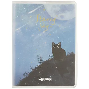 Записная книжка А7 80л кл. "Starry sky. Black cat" в ПВХ-обложке, тонир.внутр.блок