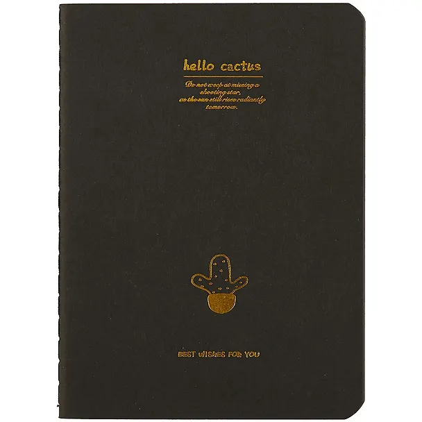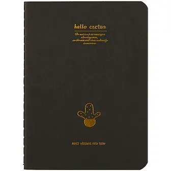 Полностью чёрная записная книжка для заметок и рисунков. Используйте цветные карандаши, пастель или даже корректор, записывайте и рисуйте – проявляйте фантазию, как вам нравится! В записной книжке 28 чёрных листов из плотной бумаги без разметки. На обложке изображены серебряные и золотые кактусы. Контуры этих экзотических растений выглядят очень красиво и изящно.