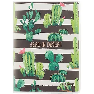 Записная книжка А6 80 листов клетка "Cactus" картонная обложка, с ПВХ-обложкой, LENWA