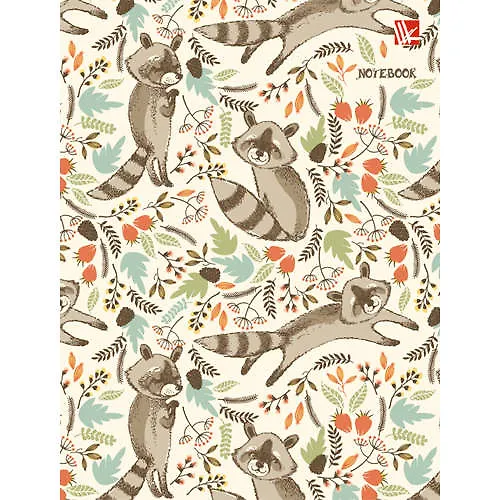 Книги для записей А6 (110х145), 48л. 7БЦ с порол. Цвет. форз. Бумага – оф.70 г/м2, цветная, линия. Веселые еноты А6 48л. (детская)