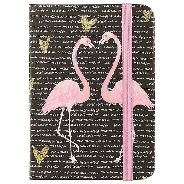 Записная книжка А7 80л лин. "Flamingos" 7БЦ, резинка, цв.обрез, инд.уп