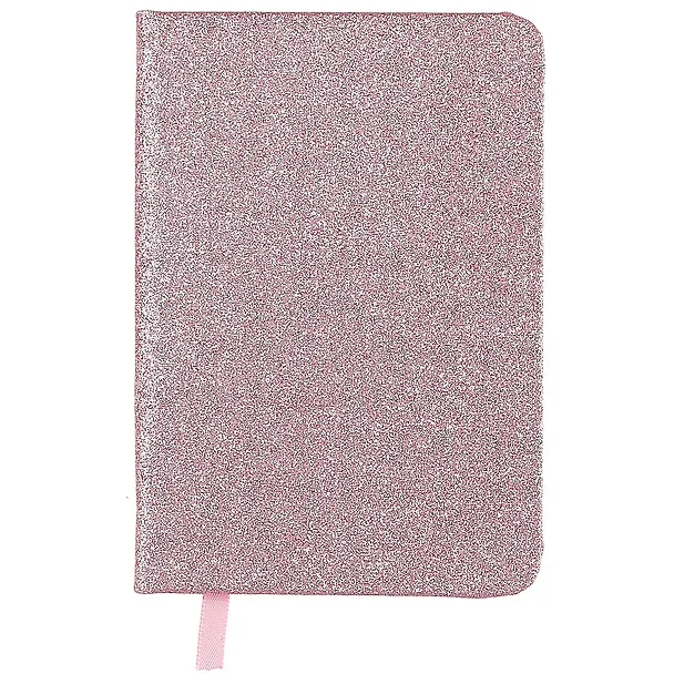 Купила такой блокнот себе на работу. По размеру он мне как раз подошёл. Не очень маленький и в то же время не большой. Продаётся этот блокнот в индивидуальной упаковке. Так что, такой и в подарок взять можно. На ощупь он шершавый. Блёстки сильно не осыпаются, но на руках немного остаются. Бумага в блокноте плотная, жёлтая, не просвечивает. Ручка на ней пишет хорошо. Здорово, что есть ленточка-закладка. С ней можно быстро найти нужные записи, что ускоряет процесс работы.