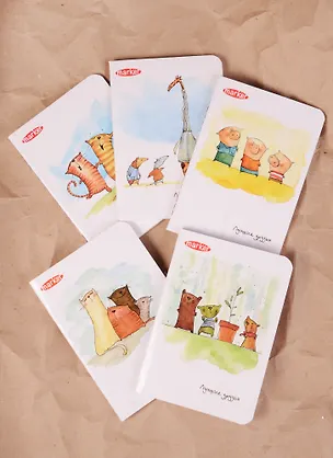 На обложках изображены очень милые и теплые сюжеты с очаровательными зверятами. Писать в таком блокнотике очень приятно, а цена еще приятней)