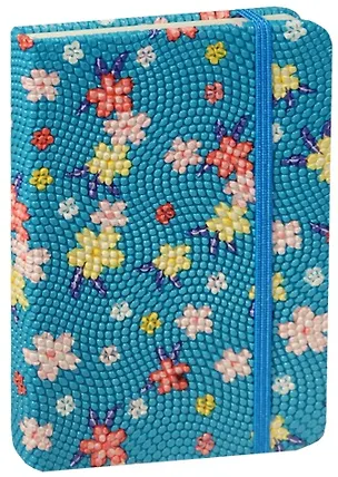 Записная книжка А6, 80 листов, в клетку, "Мелкий цветочек", объемный ПВХ, на резинке.