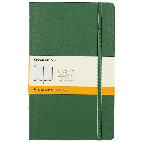 Записная книжка с мягкой цветной обложкой с закругленными углами, закладкой, эластичной застежкой и вместительным внутренним карманом.