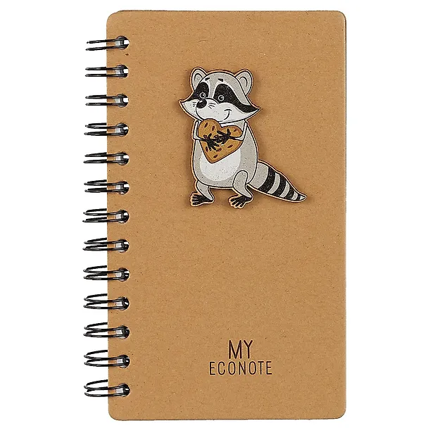 Записная книжка с плотной картонной обложкой понравится тем, что ведёт экологичный образ жизни. Она сделана без использования пластика, красиво выглядит и не мнётся в сумке. Под обложкой с енотом-сластёной спрятались 200 страниц без разметки. Вы сможете вести записи так, как вам будет удобно!