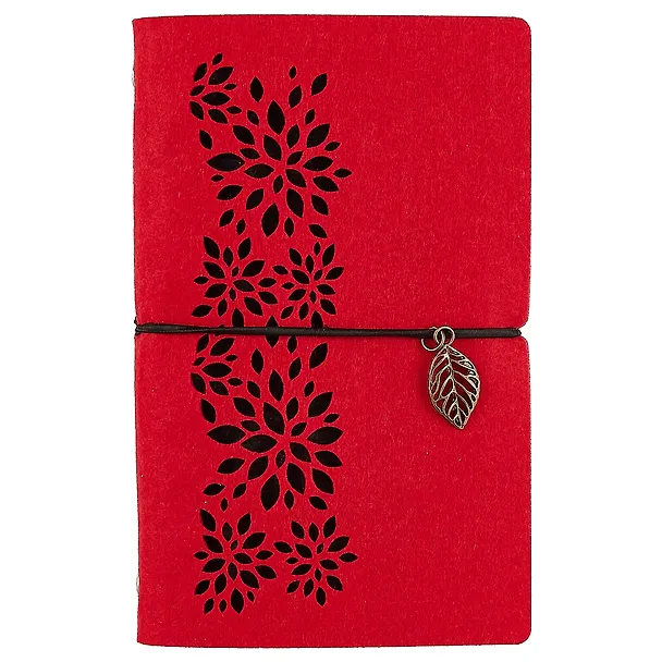Записная книжка, Феникс+ А6, 160л. "Ноутбук Красный"обл. из фетра с вырубкой, тонир. офсет. бумага, внутр. блок на метал. кольцах, декорат. застежка-резинка с метал. фигуркой