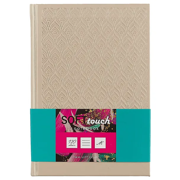 Бежевую матовую обложку украшает объёмный орнамент в виде павлиньих перьев. Выглядит очень красиво!