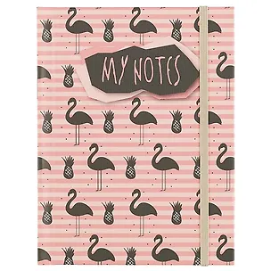 Ноутбук/записная книжка 96л твердый переплет (7БЦ) А6 9078-EAC с матовой лам и резинкой "Силуэты фламинго"