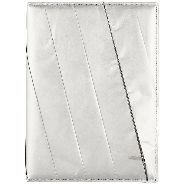Записная книжка А5+ 120л 180*240 "Синтетическая бумага" серебряная, дизайн обл."плиссе", мягк.переплет с поролоном, вставной внутр.блок, карман, ляссе