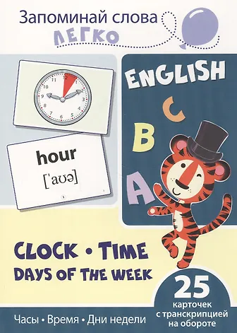 Запоминай слова легко. Часы, время, дни недели. 25 карточек с транскрипцией