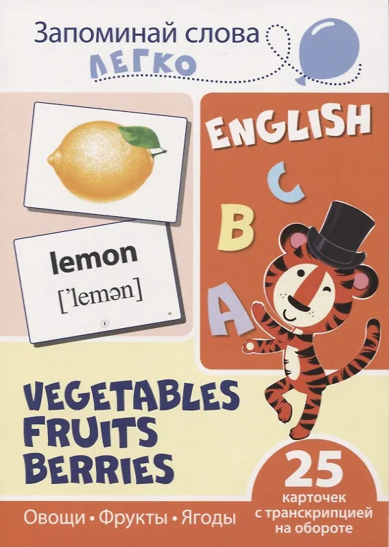 Запоминай слова легко. English. Овощи, фрукты, ягоды / Vegetables, Fruits, Berries. 25 карточек с транскрипцией на обороте