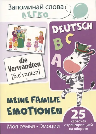 Издательство «ТЦ Сфера» представляет комплект серии «Запоминай слова легко» под названием «Моя семья. Эмоции». Он состоит из 25 тематических карточек и адресован детям, желающим овладеть основами немецкого языка в игровой форме.