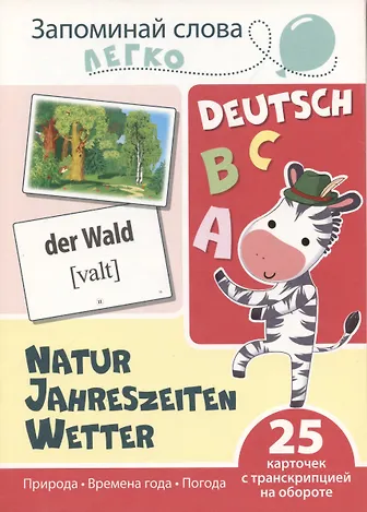 Издательство «ТЦ Сфера» представляет комплект серии «Запоминай слова легко» под названием «Природа. Явления природы. Погода». Он состоит из 25 тематических карточек и адресован детям, желающим овладеть основами немецкого языка в игровой форме.