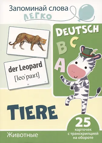 Издательство «ТЦ Сфера» представляет комплект серии «Запоминай слова легко» под названием «Животные». Он состоит из 25 тематических карточек и адресован детям, желающим овладеть основами немецкого языка в игровой форме.