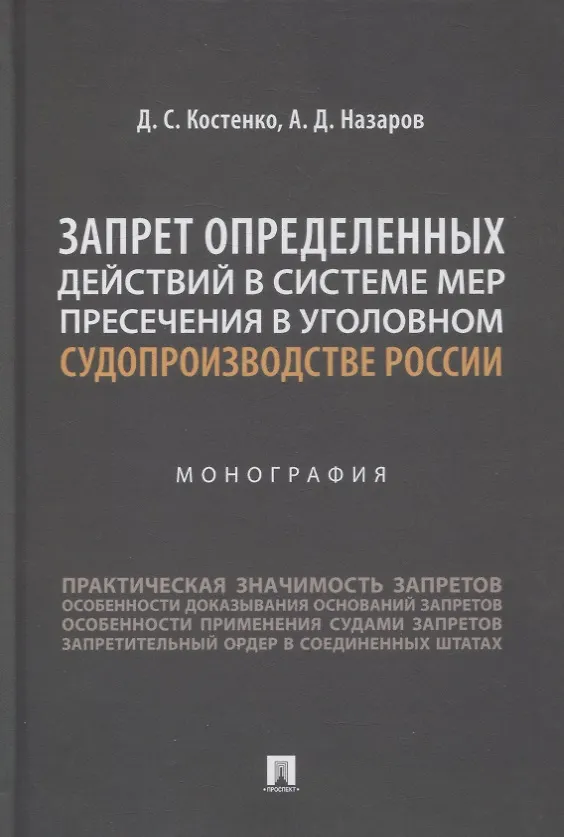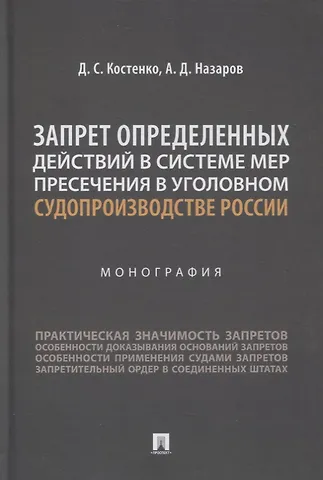 Монография посвящена запрету определенных действий – мере пресечения, относительно недавно оформленной в уголовном процессе России. Актуальная действительность правоприменения, с одной стороны, показывает широкие возможности для применения запрета определенных действий, с другой – отсутствие устоявшейся практики и всестороннего теоретического разбора вопроса.
